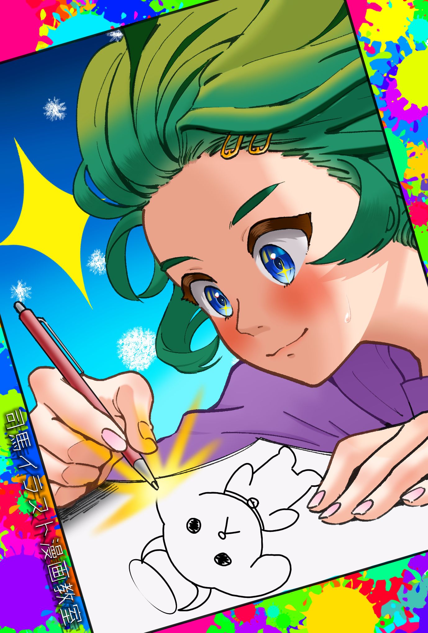 彼女が描いているイラストを見ましたか?昨年のぬり絵コンテストのモデル二人じゃないですか!!!